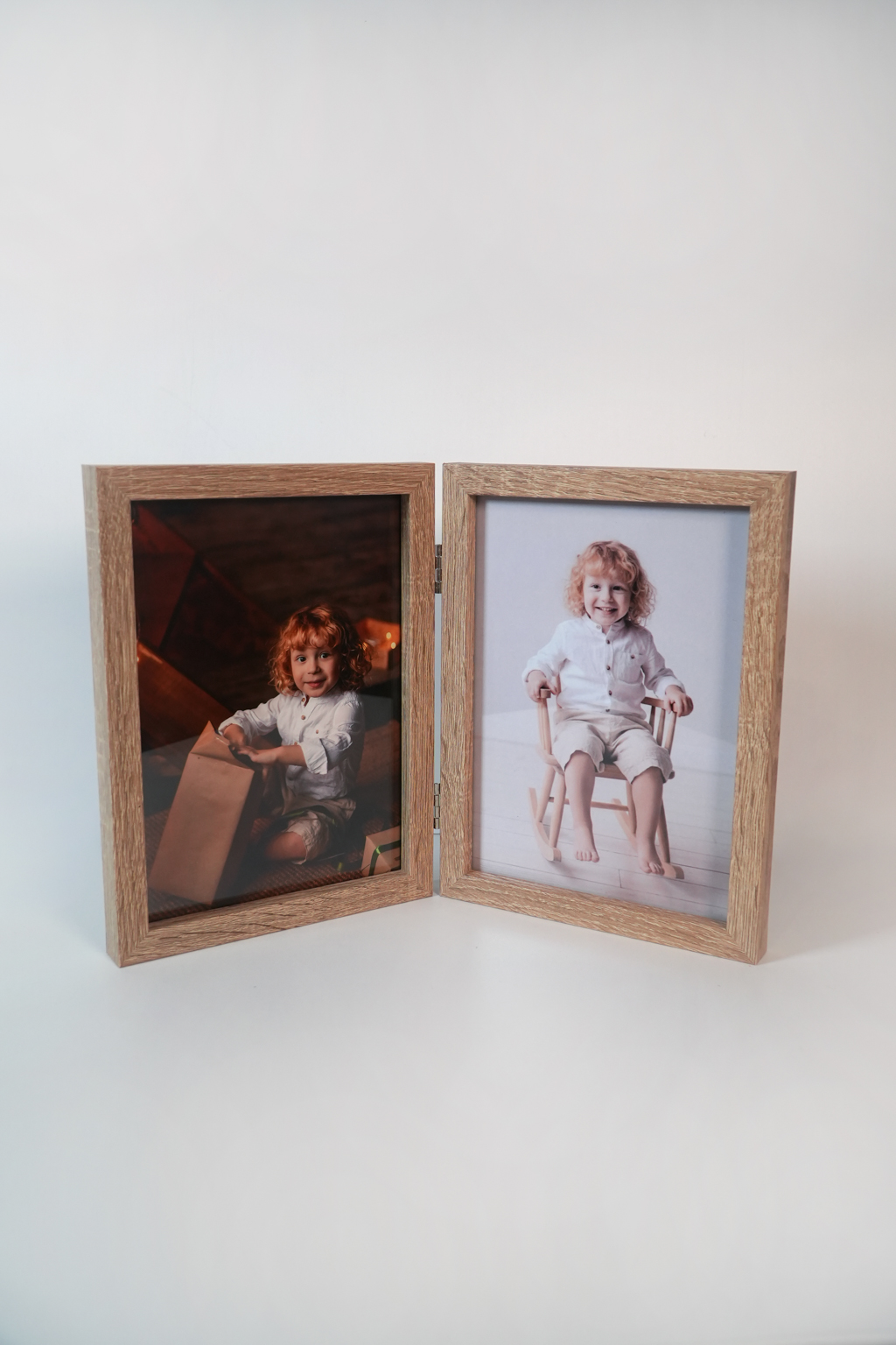 Drewniana ramka na dwa zdjęcia dziecka